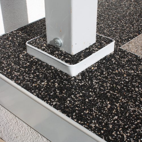 Der Natursteinteppich ist nicht nur frostsicher, sondern auch fest mit dem Untergrund (wie Zementestrich, Beton, Fliesenbelag, Waschbetonplatten u.a.) verbunden. Auch hier ist ein Schleifen, Fräsen oder Kugelstrahlen des Untergrunds unerlässlich, um die vorgeschriebenen Haftzugwerte zu erreichen. Darüber hinaus dient eine geschlossene Schicht aus Epoxidharz zur Verfestigung des Untergrundes und zugleich als Trägerschicht für die darauf verlegte flexible Polyurethanbeschichtung. Diese stellt wiederum eine wasserführende Membranschicht zum Schutz des Untergrundes dar. Der darauf verlegte Steinteppich ist offenporig und fungiert als drainagefähige, schützende Schicht, die Ihrer Gestaltungsfreiheit keineswegs im Wege steht. Weitere Details finden Sie unter: → STEINTEPPICH TECHNIK