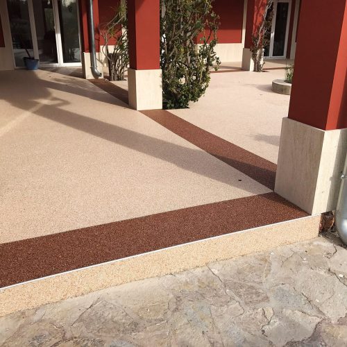 Schon eine einfache Umrandung Ihrer Terrasse schafft beeindruckende Akzente. Zusätzlich eröffnet die Kombination verschiedener Farben eine Vielzahl an Gestaltungsmöglichkeiten. Diese Vielfalt macht den Steinteppich zu einem Bodenbelag, der sowohl optisch als auch funktional überzeugt.